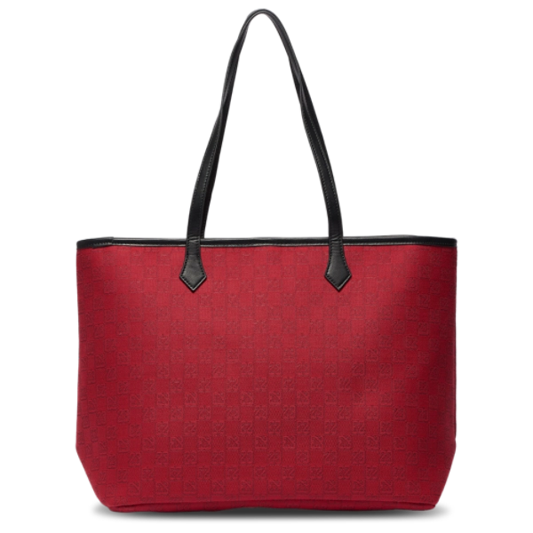 The body is made of 100% polyester, while the trim and handles are 100% polyurethane.