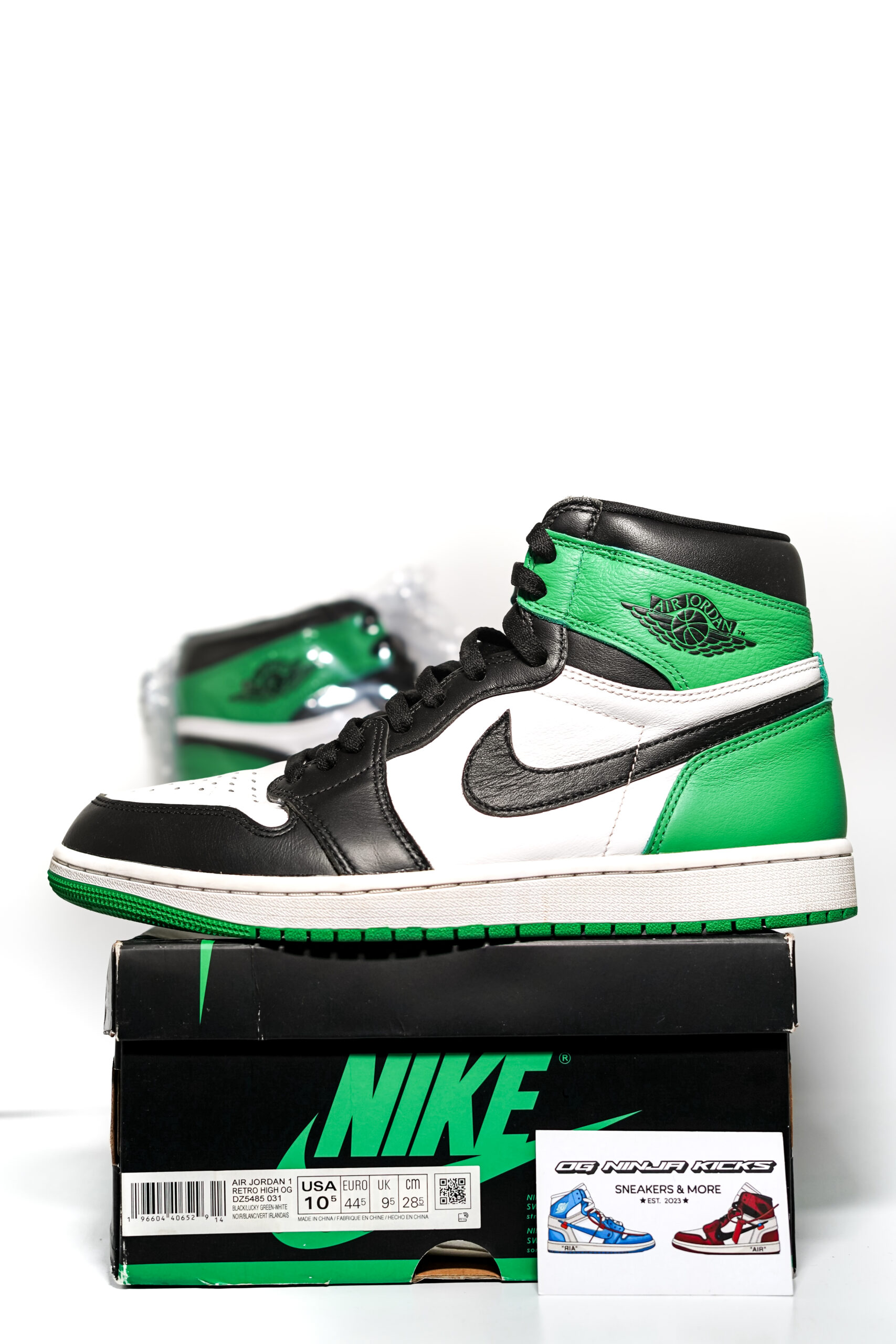 The Air Jordan 1 Retro High OG Lucky Green released April 15, 2023, with a retail price of $180.